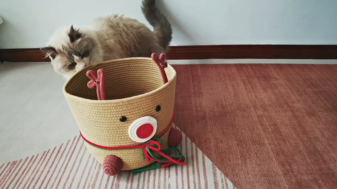 - 【FESTIVE REINDEER DESIGN】Adorable Christmas-themed basket featuring a charming reindeer motif that adds instant holiday cheer to any space, perfect for seasonal decorating and creating a warm, festive atmosphere in your home.