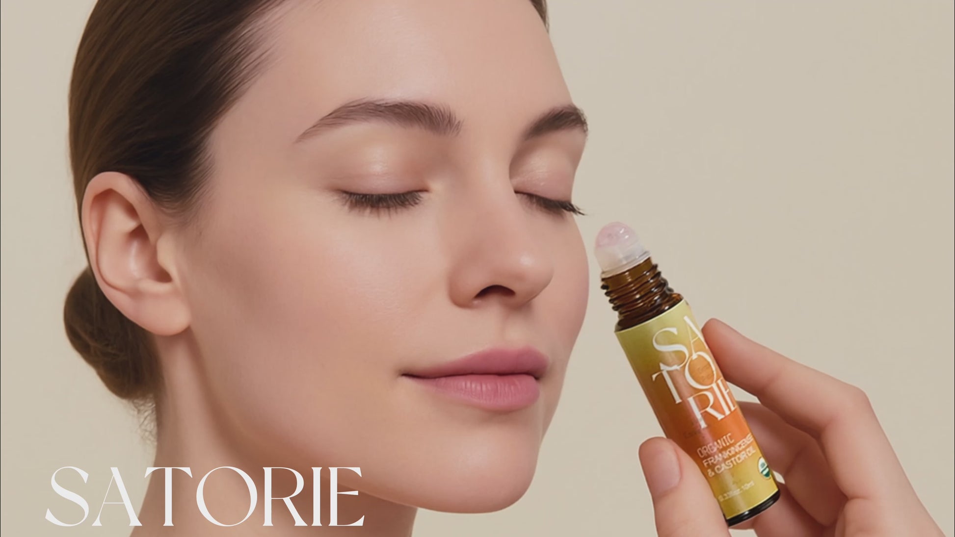 Organic Castor & Frankincense Oil with Rose Quartz Roller (0.33floz/10ml)